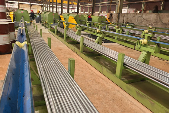 公司年產萬噸“不銹鋼無縫換熱管”;目前擁有φ20高精度高速軋機6臺,φ60高速軋機5臺;冷拔機 8臺(4臺一拉三冷拔機);全套渦流超聲一體探傷設備;水壓機等。